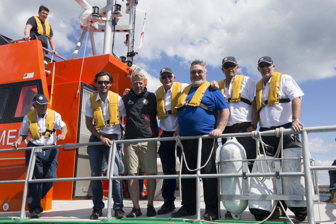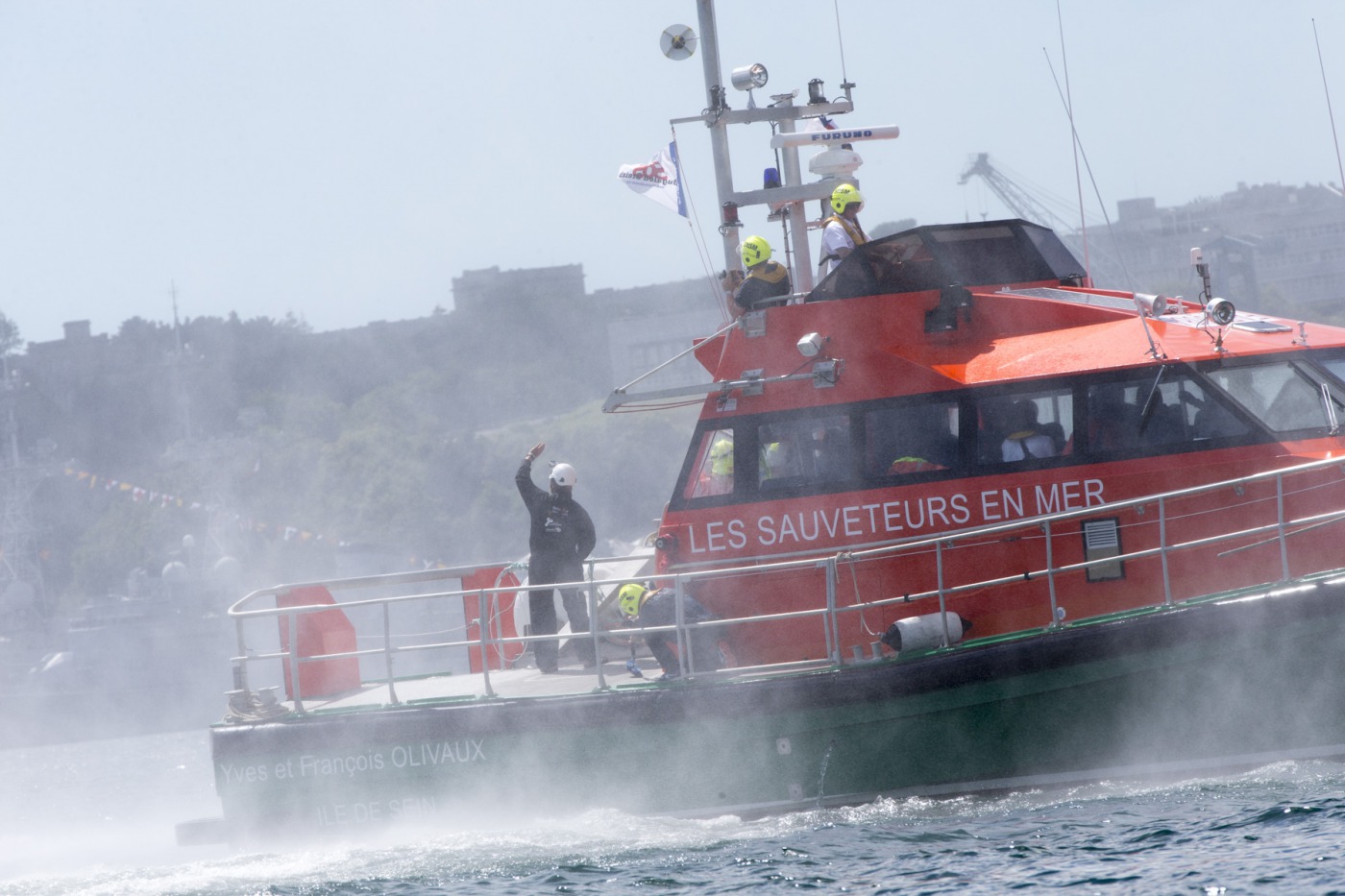 Comme prévu, ce jeudi après-midi, dans le cadre des Fêtes Maritimes de Brest, Yann Eliès a participé à une démonstration d’hélitreuillage orchestrée par la Marine Nationale, en partenariat avec la SNSM. « Ca a été une expérience géniale ! », a déclaré le skipper de Quéguiner – Leucémie Espoir qui a été treuillé depuis un canot de l’association des sauveteurs en mer avant d’effectuer un survol de la rade puis d’être déposé de nouveau sur la vedette. « C’était vraiment sympa d’avoir été, le temps de l’opération, au contact des deux équipages et d’échanger avec eux. Tous ont été très pros et m’ont vraiment impressionné. C’est quelque chose que je n’avais encore jamais vécu et, bien, sûr, je croise les doigts pour que cela ne m’arrive jamais en course mais je suis super content d’avoir eu l’occasion de vivre ça et de le vivre dans ce contexte plutôt que dans une situation plus chaude. C’était un bon entraînement et cela m’a permis d’être un peu moins bête (rires) ! », a conclu Yann, s’extasiant par ailleurs de l’envergure et de la formidable ambiance des fêtes brestoises.