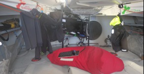 « Ca va. Mine de rien, ça fait un moment qu’on est tout le temps par 50° Sud. L’eau est donc toujours froide et il ne fait pas chaud. En revanche, les nuits sont courtes et ça, c’est bien. Là, je suis en train de prendre mon petit déjeuner. Au menu : céréales. C’est agréable. Presque autant que les quelques pommes qu’il me reste. J’en ai encore quatre. Elles sont emballées dans du papier d’alu et, aussi incroyable que cela puisse paraître, elles sont encore super bonnes. Je les savoure car elles font partie des tous derniers trucs frais à bord. A vrai dire, au bout de 44 jours de mer, je commence à tourner un peu en rond au niveau de la bouffe. Le dernier mois risque d’être un peu long mais ça tombe bien car j’ai l’impression que j’ai un peu grossi (rires) ! »
