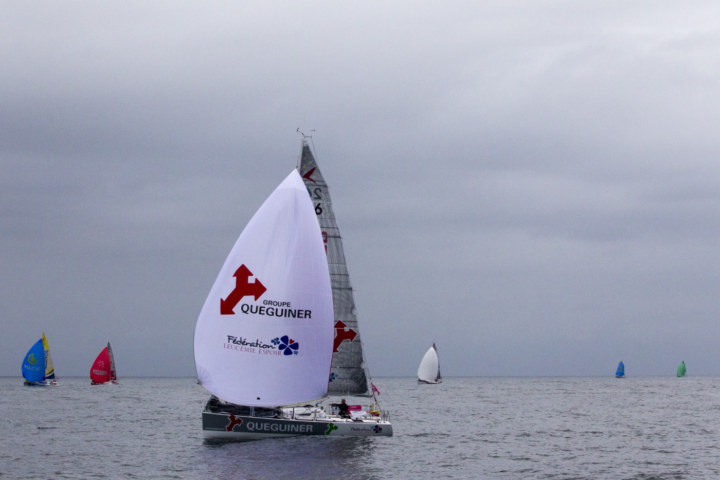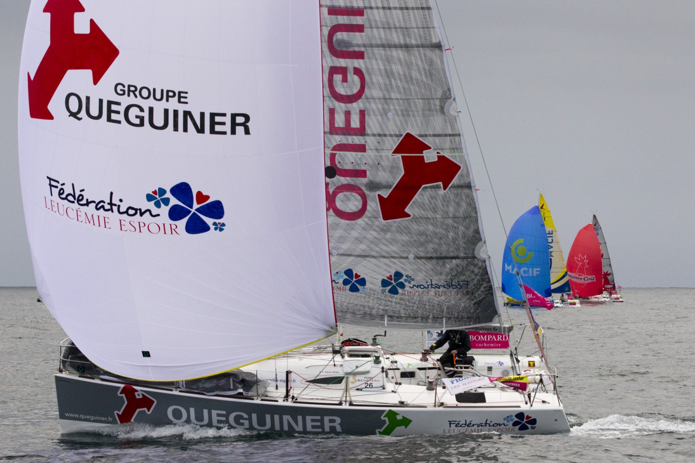 « Je ne serai serein qu’une fois passée la dernière bouée de l’estuaire de la Gironde…» Inquiet, à l’idée d’hypothéquer ses chances de victoire sur un banc de sable, ces mots, Yann Eliès n’a eu de cesse de les répéter avant le départ de cette première étape. Or, à l’heure qu’il est, non seulement le briochin a quitté l’estuaire sans encombre, mais il domine la flotte de la tête et des épaules. Spécialiste des mauvais départ, et des superbes remontées, le briochin n’a pas changé ses habitudes. Mal engagé sur les premiers milles du parcours, il n’a eu besoin que de quelques heures pour retrouver le groupe de tête, se muer en redoutable chasseur, et mettre la flotte dans son sillage. Plus inspiré, et plus rapide que ses partenaires de jeu, Yann a su déjouer les pièges d’un vent mollissant, puis quasi inexistant, pour remonter un à un ses adversaires et batailler désormais avec Alexis Loison, auteur d’un joli coup par le Sud.