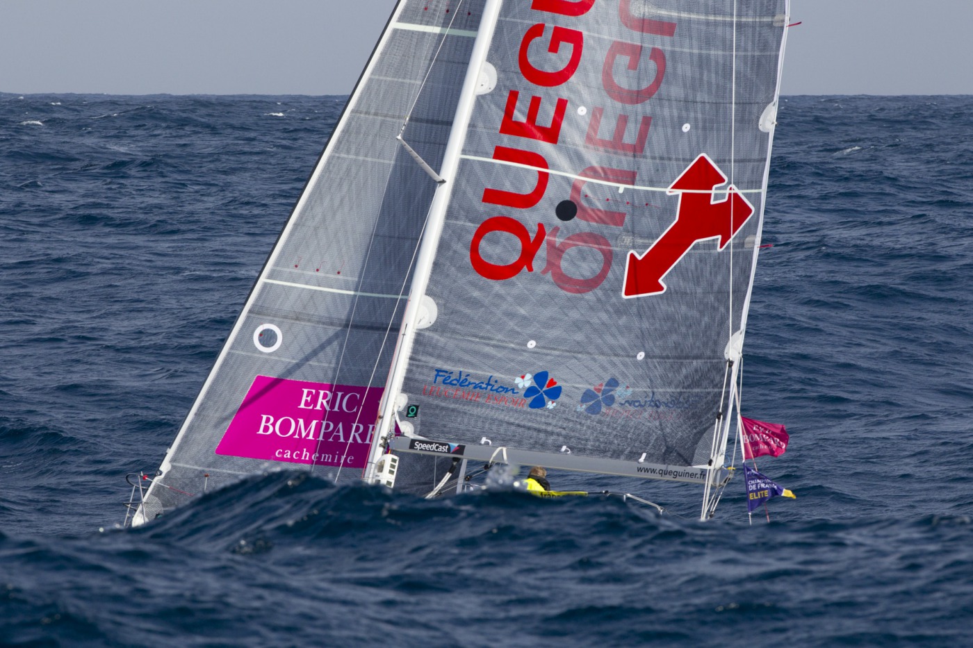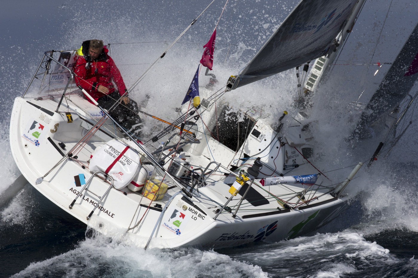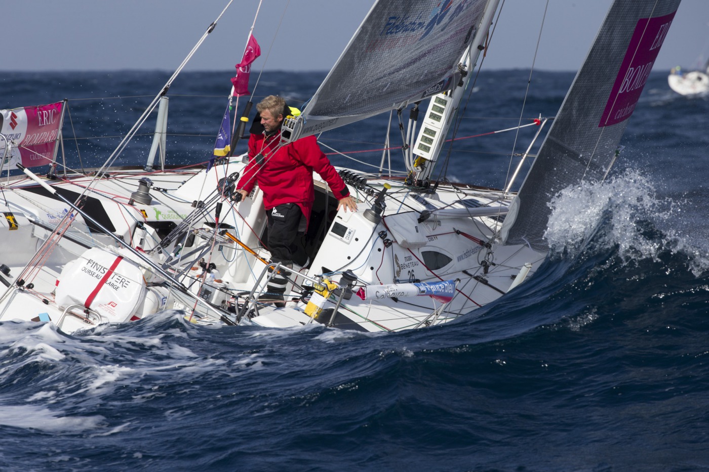 Deuxième du classement général, à l’issue de cette première étape, Yann a réussi à se glisser dans le haut du tableau, là ou d’autres ont déjà hypothéqué leurs chances de victoire. Si habituellement, l’objectif serait de se maintenir aux avant-postes, et de marquer les adversaires les plus proches, les conditions rencontrées laisseront peu de place à ce type de réflexion : «La priorité, ce sera déjà de rallier Concarneau sans trop de casse pour le bonhomme, comme pour le bateau. Lorsque l’on regarde les pourcentages, habituellement, on évolue dans 20 à 25 noeuds de vent pendant 50% du temps. Là, on va avoir 30 nœuds. Si l’on rajoute deux ou trois mètres de creux, ça laisse peu de place à la régate.» Malgré les mesures prises par le Comité de course, cette étape devrait ressembler à une véritable bataille contre les éléments. Prêt à subir les foudres de Dame Nature, Yann aborde cette épreuve comme un départ au front «On part au combat, et une chose est sûre, il va y avoir des pertes et de la casse sur cette étape. On va affronter la mer et le vent de face pendant trois jours, et les plus faibles seront tentés d’abandonner en passant près des ports. Il faudra être fort mentalement pour ne pas lâcher. J’ai le bon bateau, j’ai l’expérience, et j’espère tenir, car je sais que l’on va perdre quelques concurrents au passage.»