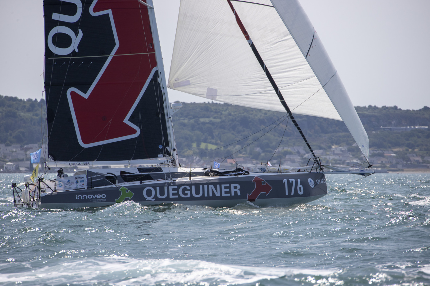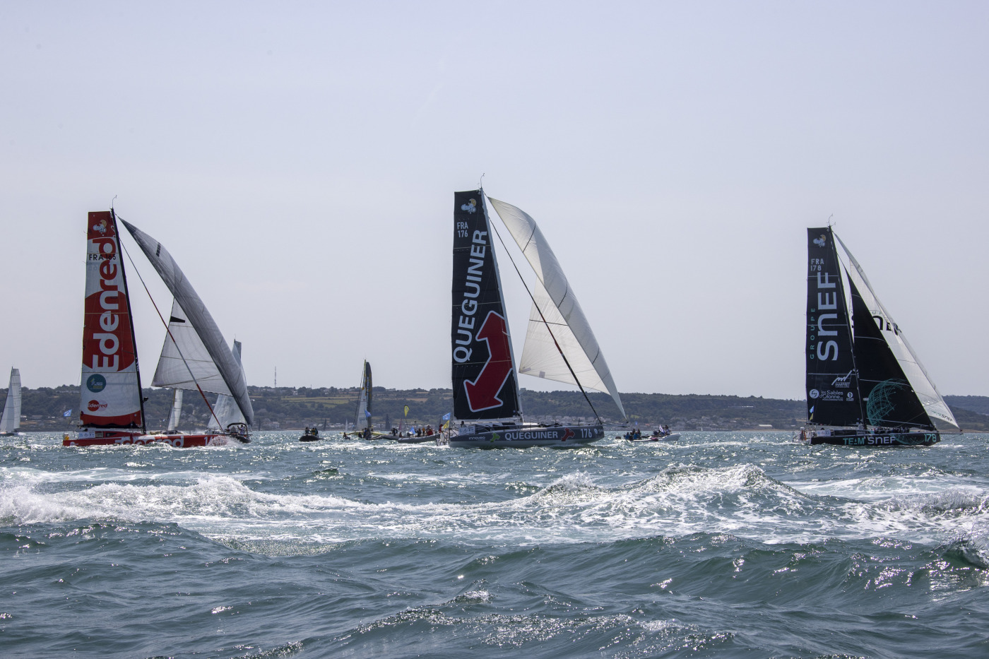 Dans ces conditions, si Antoine Carpentier a été le plus prompt à s’élancer, Corentin Douguet a également très bien tiré son épingle du jeu, s’installant d’office dans le Top 5. « Ça va être intéressant. La sortie de la Manche va globalement se faire au portant avec un petit vent pas trop fort qui va nous emmener jusqu’à la pointe sud-ouest de l’Angleterre après avoir passé la marque de Shambles West. Ce qui nous attend en mer Celtique est un peu plus compliqué car on va devoir négocier une phase de transition, avec de la molle qui risque de distribuer les bons et les mauvais points aux abords du Fastnet et créer une sorte de cassure au sein du peloton, et le centre d’une petite dépression qui risque de se trouver sur notre chemin à un moment ou à un autre », a commenté le skipper de Quéguiner – Innoveo qui s’attend alors à rencontrer des vents supérieurs à 30-35 nœuds pour redescendre au portant vers la pointe Bretagne avant, ensuite, de rejoindre une marque au large de La Rochelle, le parcours ayant été finalement réduit de 1 000 à 880 milles suite à la suppression du passage de la bouée BXA, au large de l’estuaire de la Gironde.