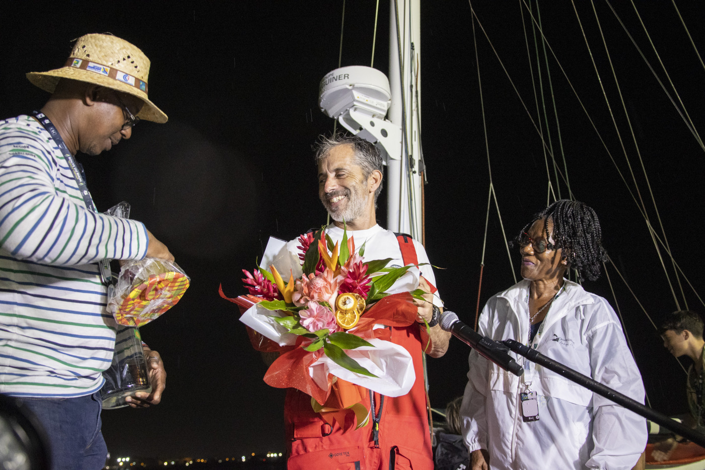 Arrivé la nuit dernière, à 23h39 (heure de Paris) à Pointe-à-Pitre, le skipper de Quéguiner – Innoveo s’est en effet octroyé la troisième place en Class40 derrière Yoann Richomme et Ambrogio Beccaria au terme de deux semaines de course aussi intenses qu’engagées. Deux semaines lors desquelles le Nantais a longtemps imprimé la cadence malgré des problèmes de moteur et, par ricochet, d’énergie, qui l’ont largement contrarié et, sans doute, privé de ses rêves de victoire. Sa performance reste cependant magistrale même si, ainsi qu’il l’a répété, elle a davantage un goût de gasoil qu’une saveur du Rhum.