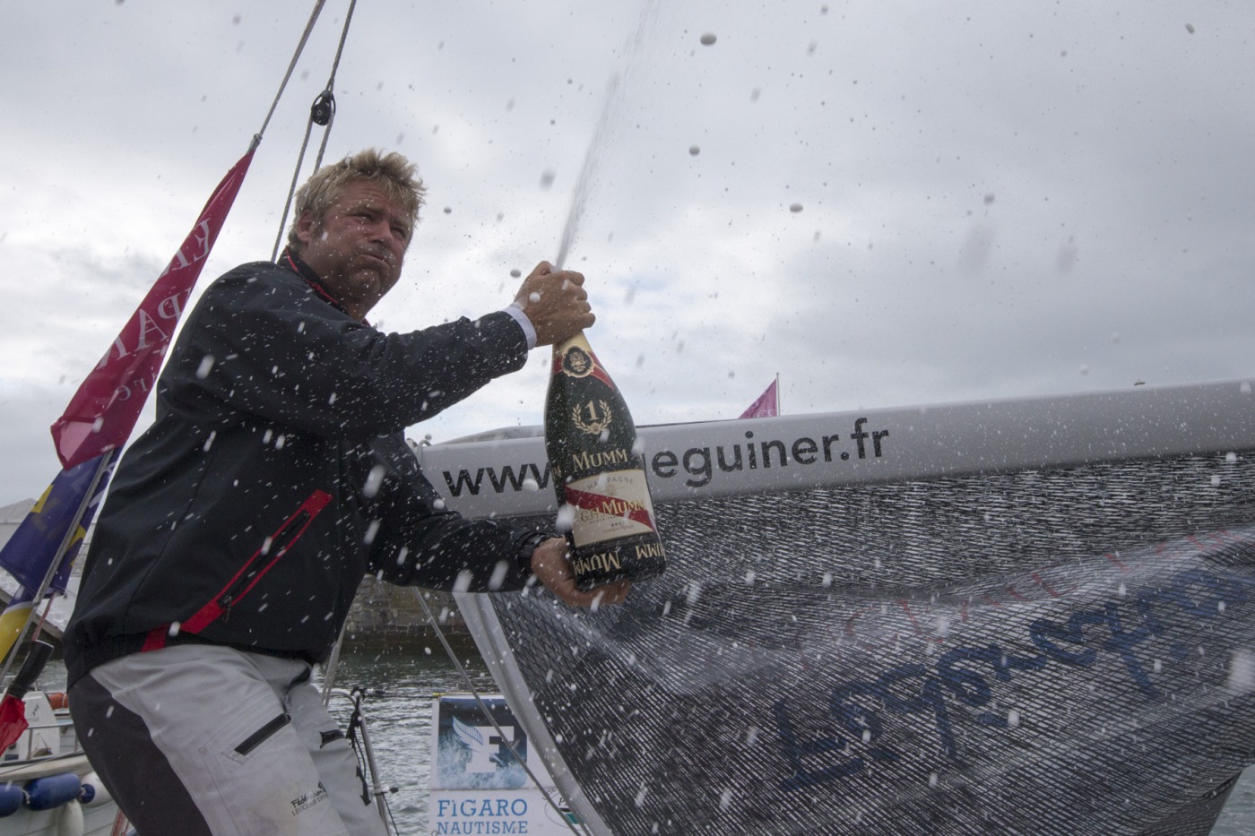 « Je ne vais pas dire que j’ai trouvé ça facile, mais ça s’est déroulé de façon assez limpide et assez rapide par rapport à ce qui était prévu. On avait le sentiment d’être sur un nuage, en état de grâce. C’est un vrai plaisir quand on navigue en tête, dans des conditions idéales, que tout fonctionne bien, et que l’on sent qu’on creuse l’écart. Je suis content de ce résultat et content d’être arrivé. Surtout que cette fois, on va pouvoir profiter de quatre nuits de sommeil, et passer une petite soirée avec les copains pour discuter. Ca va être super sympa ».