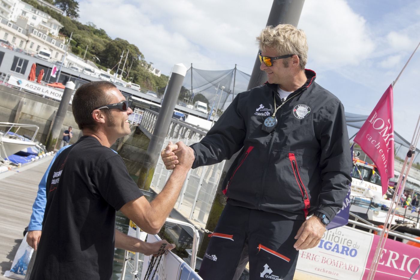 Bien décidé à s’offrir une dernière belle étape, c’est avec un sourire plein de confiance et de défiance que Yann Eliès a quitté les pontons de Torbay cet après-midi. Car avant de se jouer sur l’eau, c’est à terre, dans les regards lancés et les mots employés, que s’ouvrent les hostilités. Et à ce petit jeu, le briochin s’en sort plutôt pas mal.