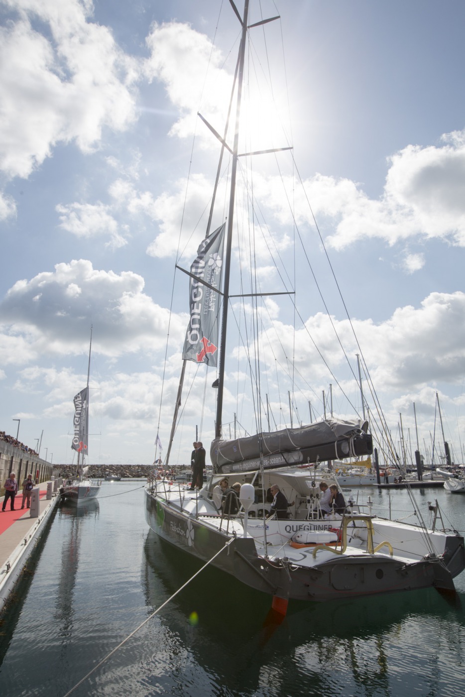 Le bateau baptisé, le bagad de Landivisiau a escorté les invités vers les différentes animations prévues pour l’occasion et le grand repas de moules - frites au profit de la Fédération Leucémie Espoir. Une fois les festivités terminées, le bateau restera une semaine à Roscoff pour des opérations de relations publiques. Yann et son équipe proposeront alors de belles sorties en mer aux invités du Groupe Quéguiner, mais aussi aux heureux gagnants du concours de selfies organisé par l’entreprise, sur la Solitaire du Figaro Eric Bompard Cachemire. Puis le 60 pieds rejoindra Lorient où Yann s’entraînera avec Charlie Dalin. Car avant de s’élancer sur le Vendée Globe 2016 à la barre de son IMOCA, le briochin prendra le départ de la Transat Jacques Vabre le 25 octobre prochain. «J’ai hâte de partir trois ou quatre jours au large pour être dans la maîtrise du support le plus vite possible. Mais c’est un bateau avec lequel j’ai déjà traversé l’Atlantique (Yann avait participé à la Jacques Vabre 2011 sur ce monocoque aux côté de Marc Guillemot, ndlr), et je l’ai déjà dans la peau ! Dès la mi-juillet, on va enchaîner les nav’ en double avec Charlie, pour bien trouver le mode d’emploi à deux. Ensuite il y aura les premières confrontations au Fastnet, puis des entraînements avec le Pôle Finistère Course au Large de Port-la-Forêt. Et ensuite la Transat Jacques Vabre va arriver très vite.» confiait Yann au terme d’une journée pleine d’émotions.