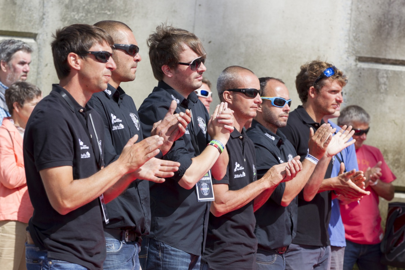 Outre les partenaires du projet, roscovites et vacanciers, se sont mêlés aux festivités, et c’est devant un môle noir de monde que le monocoque de Yann Eliès a reçu la bénédiction destinée à le protéger des foudres de Dame Nature. Car si le baptême est un moment symbolique, à la base, il est surtout destiné à conjurer le mauvais sort. Et c’est un vieux proverbe anglais, selon lequel "un navire qui n'a pas goûté au vin goûtera au sang» qui a donné naissance à cette tradition. Si avec le temps, le sang a été abandonné au profit du vin, puis du champagne, l’idée selon laquelle une bouteille doit être brisée à l’étrave pour calmer les Dieux, et éviter les naufrages, et les tempêtes perdure aujourd’hui. Et bien que Yann ne soit pas superstitieux, il tenait à ce que tout se déroule dans les règles de l’art «Il y a deux ou trois choses pour lesquelles je suis un peu superstitieux, il s’agit du baptême, le prologue de la Solitaire du Figaro, et les animaux aux grandes oreilles. Et pour le baptême, il ne suffit pas de briser une bouteille de champagne à l’étrave du bateau. Il faut qu’elle se casse du premier coup. C’est très important. Mais tout va bien, Alex Dupont a assuré !» s’amusait Yann en évoquant cette tradition.