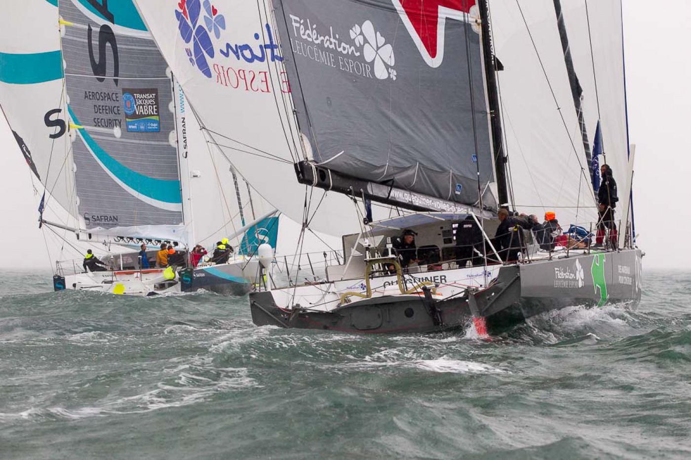 Confrontés à une flotte de neuf IMOCA, dont Safran et Banque Populaire, issus de la nouvelle génération, Yann et Charlie se sont rassurés quant à leurs chances sur la prochaine Transat Jacques Vabre. Deuxième à franchir la ligne d’arrivée, juste derrière PRB skippé par Vincent Riou, et devant SMA emmené par Paul Meilhat et Michel Desjoyeaux, le tandem se sait résolument dans le coup à deux mois de cette traversée de l’Atlantique.«On joue d’entrée de jeu avec les trois meilleurs bateaux, et même si l’on a un petit déficit de vitesse au près, on est très rapide au portant» assurait Yann avant d’ajouter «Nous avons les armes pour rivaliser avec les bateaux plus récents. A nous d’apprendre à bien utiliser notre machine sur les deux mois qu’il nous reste.» Bien partis, Yann et ses hommes ont su faire les bons choix pour se positionner aux avant-postes et réaliser un joli coup sur les derniers milles du parcours, comme le confiait Charlie en revenant sur les temps forts de la course. «Après un bon départ, on a bien tricoté dans le Solent et on s’est même emparé de la tête en choisissant d’envoyer le J2 et non le J1 comme PRB sur un bord de reaching qui nous a conduit à la pointe Sud de l’Ile. Ensuite, on s’est rapproché de la côte pour s’abriter des courants, et on s’est fait reprendre par PRB et SMA qui vont plus vite au près. Mais une fois passé le Fort de No Man’s Land, on a envoyé le spi alors que SMA a envoyé le grand gennak, et ça nous a permis de reprendre la deuxième place. On est dans le coup, c’est top !» souriait Charlie confiant pour la suite.