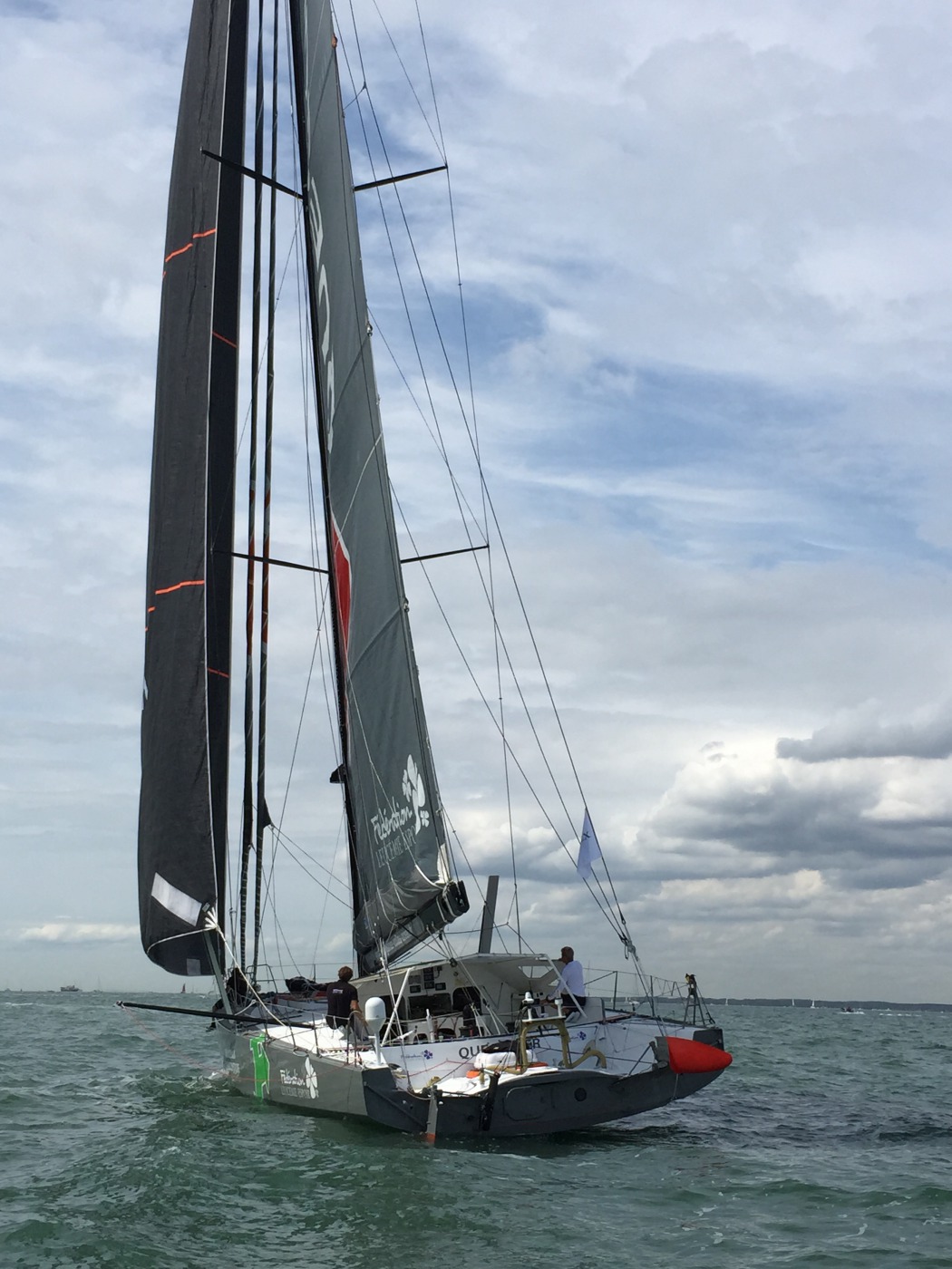 Engagé sur une course en double en IMOCA pour la première fois de sa jeune carrière, c’est avec une furieuse envie d’aller se frotter à la concurrence que Charlie Dalin a quitté les pontons ce matin, pour le départ de la Rolex Fastnet Race, aux côtés de Yann Eliès «Je suis super content de participer à cette épreuve aux côtés de Yann. Ce sera une super expérience, j’en suis sûr, même si les conditions météo vont offrir des passages compliqués.» Deuxièmes à s’élancer, juste après les multicoques, c’est dans les petits airs que les huit IMOCA en lice dans ce grand rendez-vous estival, ont lentement attaqué les premiers milles pour descendre le Solent et progresser vers l’Ouest. Un vent extrêmement faible, qui ne devrait pas se montrer plus généreux dans les heures qui viennent. «La première partie sera très technique, jusqu’aux iles Scilly (à la pointe Sud-Ouest de l’Angleterre), qui constitueront un passage à niveau. Nous aurons trois DST (zone de séparation de traffic) à éviter, plus l’archipel qui constitue un obstacle en lui-même. Différentes possibilités s’offriront à nous pour contourner cet amas de zones interdites, en sachant que nous aurons très peu de vent et pas mal de courant. Ce passage délicat sera le tournant de la course» confiait Yann après avoir épluché les fichiers météo. Et Charlie d’ajouter «Il n’est pas exclu que l’on soit obligé d’utiliser le mouillage à un moment donné, ça risque d’être compliqué. Mais après, une vingtaine de noeuds de vent devraient rentrer au Sud, Sud-Ouest, et l’ordre de redémarrage après les iles Scilly sera probablement le même que celui à l’arrivée.»