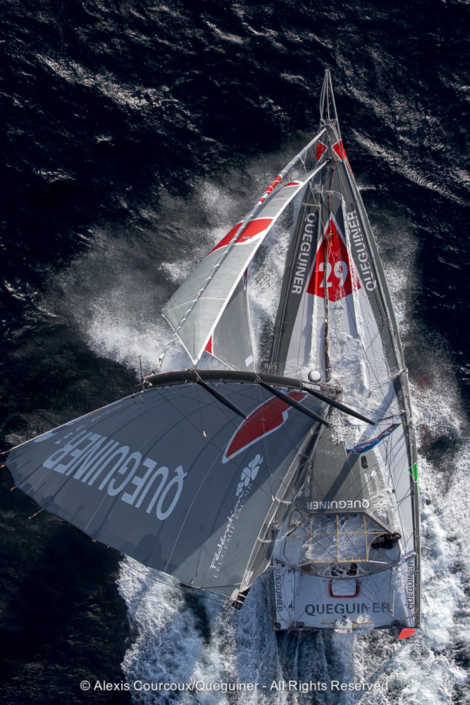 « Il y avait baston. Nous avons profité de l’occasion pour tester une petite voile de portant avant la Transat Jacques Vabre qui arrive à vitesse grand V. Sur ce type d’épreuve, il est très courant de commencer par quatre ou cinq jours avec 25 à 50 nœuds. Jusqu’ici, nous avons eu peu d’opportunités de naviguer dans du vent fort car les conditions, ces derniers mois, ont plutôt été idylliques. Du coup, nous avions pas mal de questions concernant l’utilisation de notre voile et cette sortie nous a permis d’y répondre en partie, même si nous avons pu voir que ce n’était pas simple », a-t-il commenté. « D’ici au départ de la Transat, il reste finalement assez peu de temps. Maintenant, nous devons rentrer dans le détail, en particulier celui des réglages », a expliqué le marin qui a effectué sa banque image hier, et qui débute un stage de trois jours organisé par le Pôle Finistère Course au Large à Port-la-Forêt, ce mardi, avec cinq de ses futurs concurrents. « Nous allons enchainer les confrontations en baie, mais aussi les speed-tests et les manœuvres. Nous savons que nous sommes un peu déficitaires à certaines allures, en l’occurrence au près et à toutes les allures jusqu’à 90° du vent. L’idée, c’est de continuer d’engranger de l’expérience et d’être vraiment performant le jour J », a souligné Yann Eliès, rappelant par ailleurs qu’à l’issue de cette session d’entraînement, une grosse opération est prévue, à savoir le changement de la quille de son bateau. « J’attends ça avec impatience car ça a pris un peu de retard. J’ai vraiment hâte de voir ce que ça donne. ». Ca tombe bien, nous aussi…