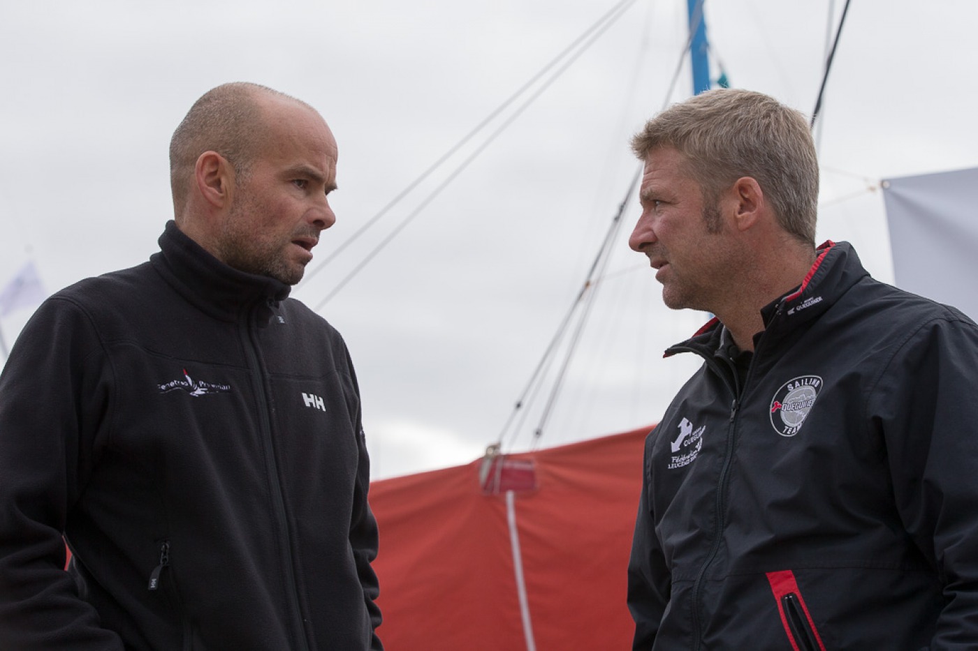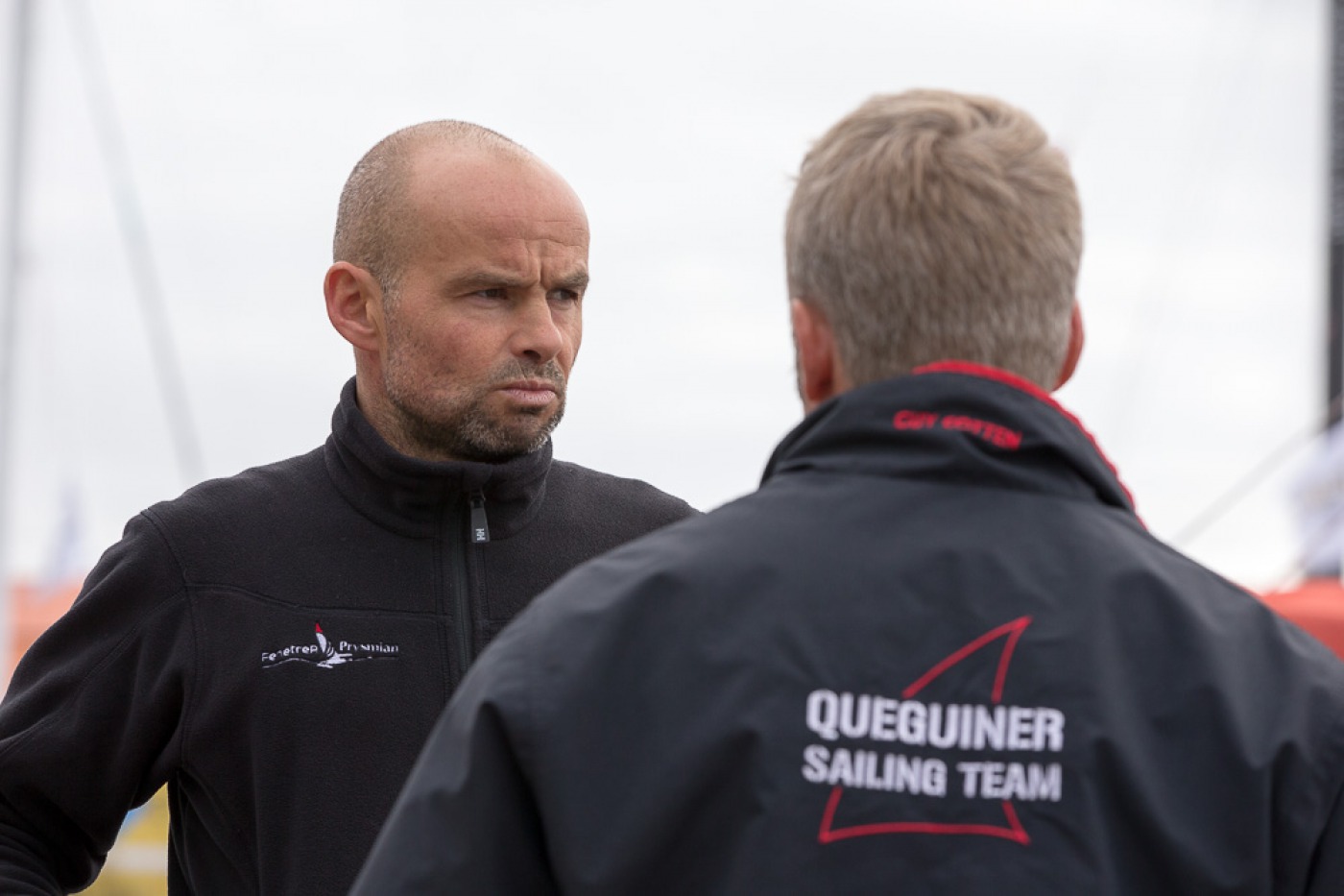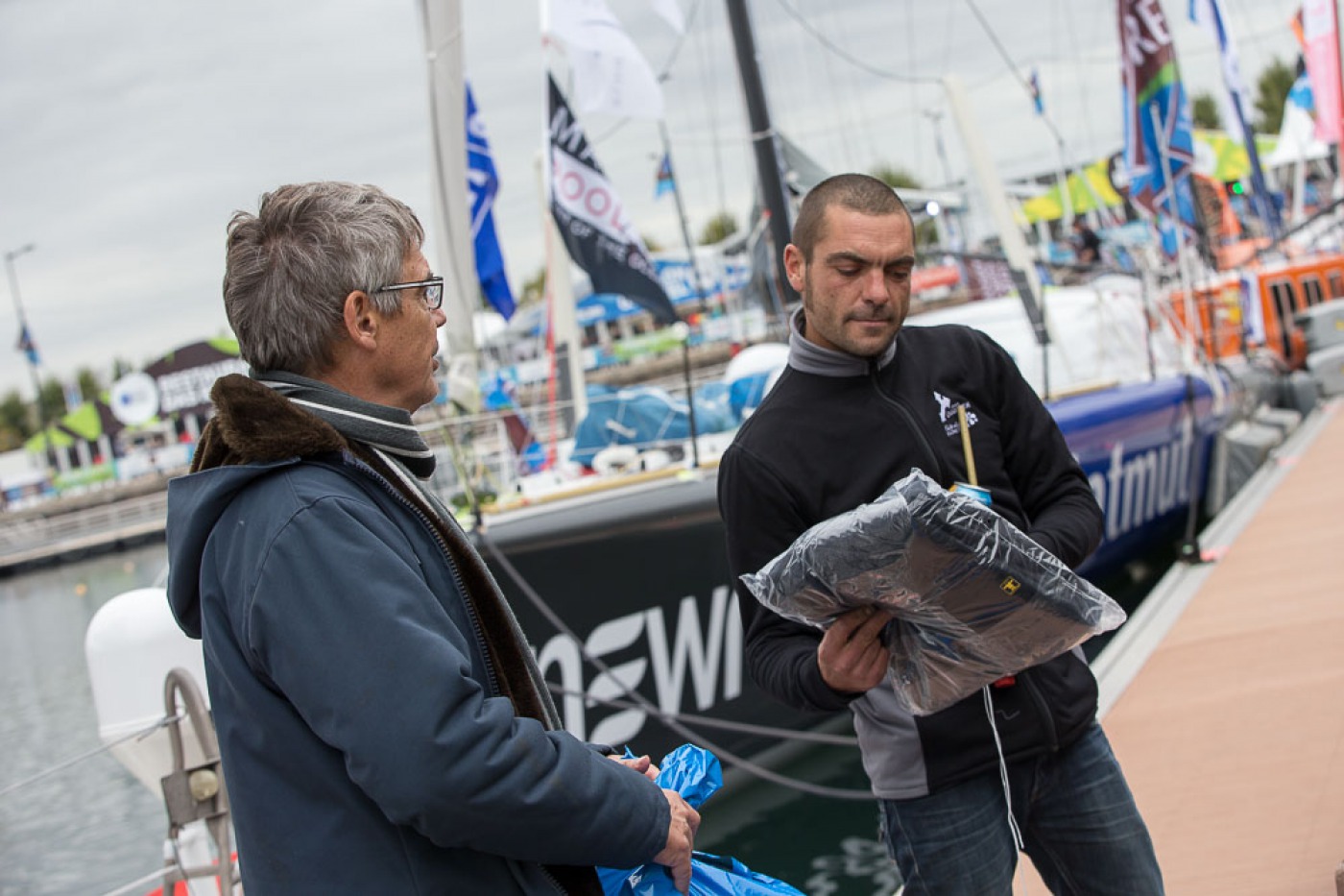 météo, kiné, rendez-vous média, plateau France bleu, rencontre avec les enfants, point technique avec l'équipe, conférence, journal de la Transat avec Serge Herbin.... Des belles journées marathon pour Yann et Charlie sur le village de la Transat Jacques Vabre.