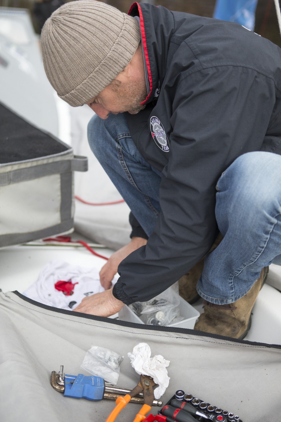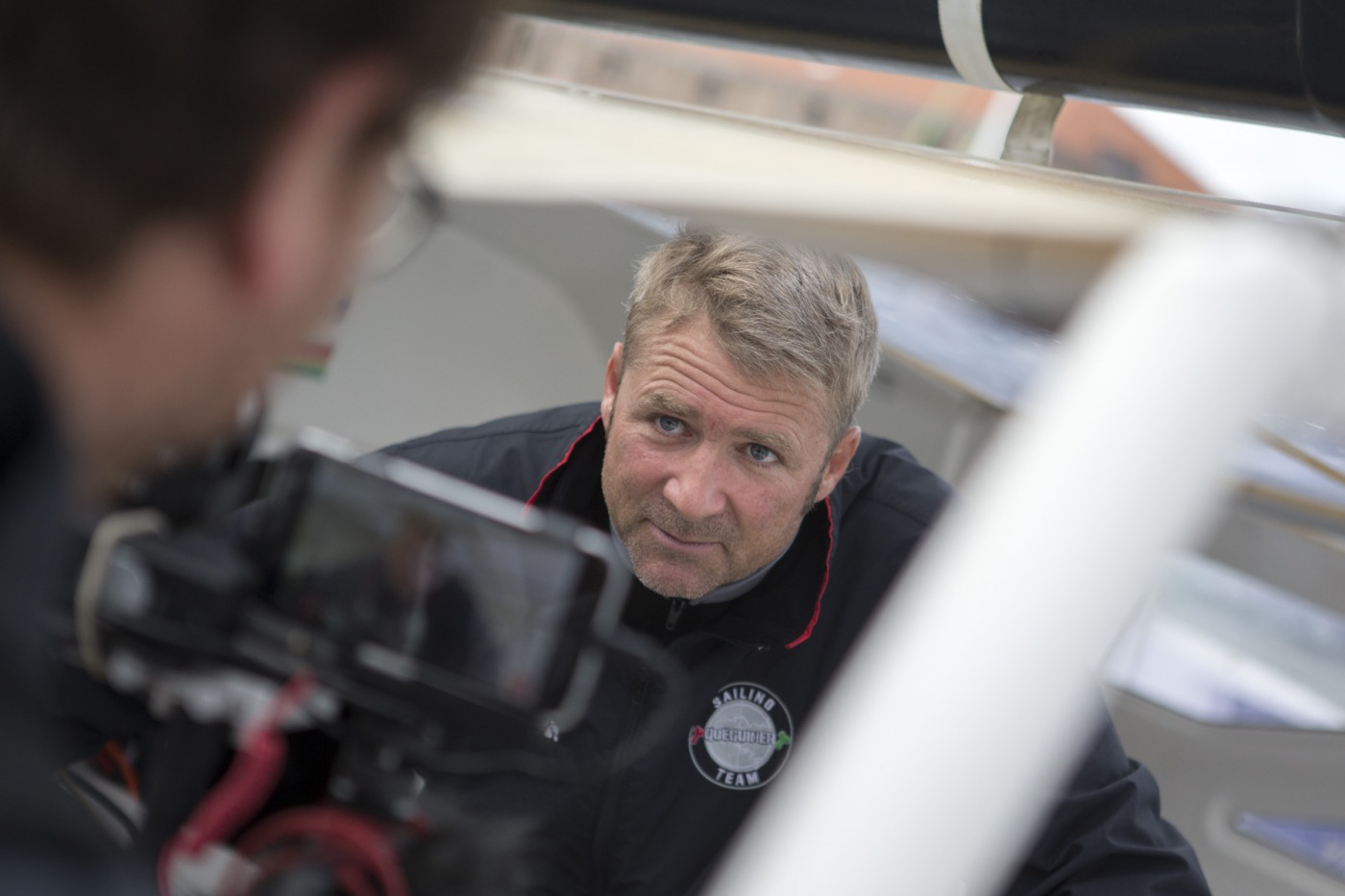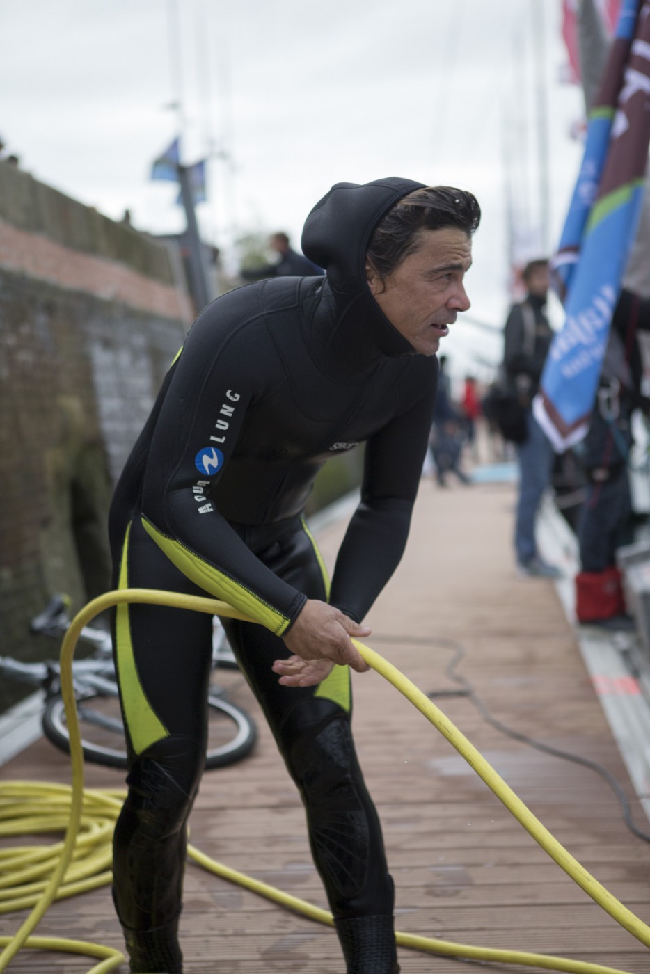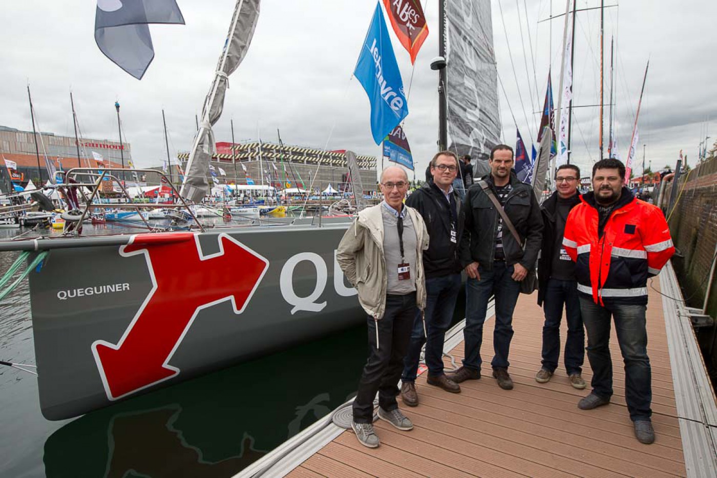 météo, kiné, rendez-vous média, plateau France bleu, rencontre avec les enfants, point technique avec l'équipe, conférence, journal de la Transat avec Serge Herbin.... Des belles journées marathon pour Yann et Charlie sur le village de la Transat Jacques Vabre.